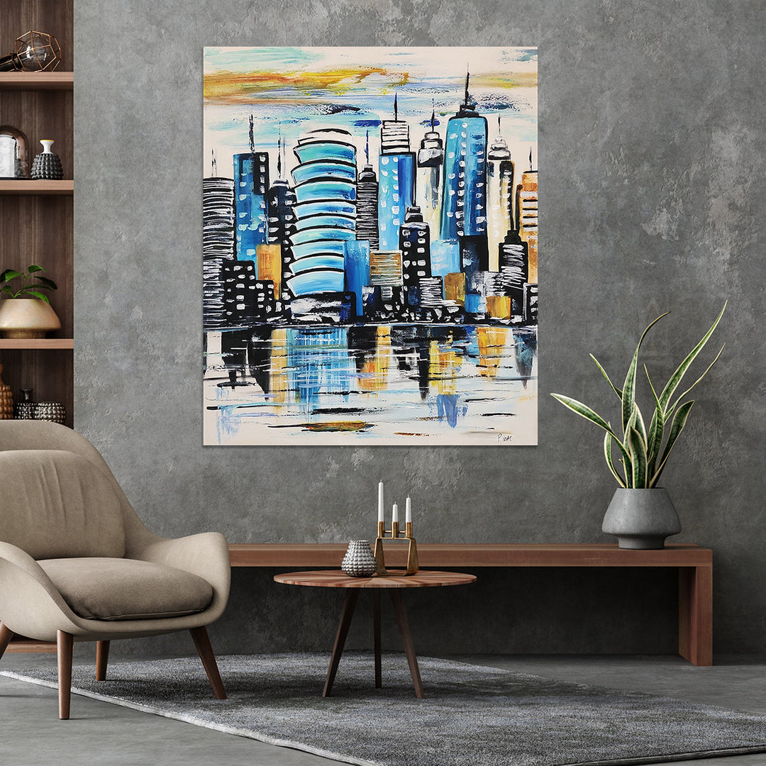 Buildings - Colourful Stylized Cityscape Art Size 100x120cm