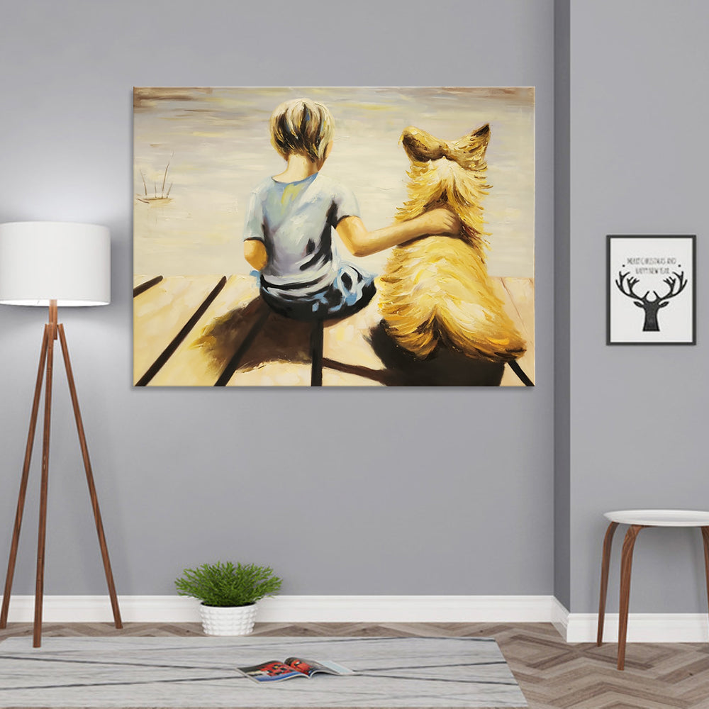 A Boy and his Dog - Hand Painted Art - 75x100cm YA501