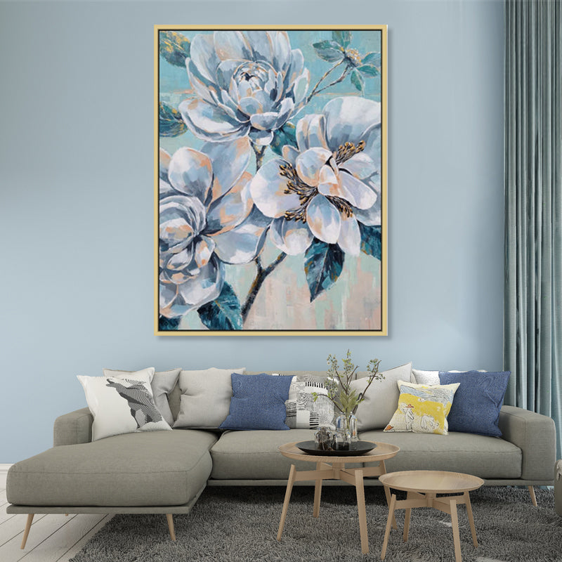 Flowers - Beautiful, Textural Representation of Flowers in a Vase amid a Cool Blue Backdrop, Size 90x120cm