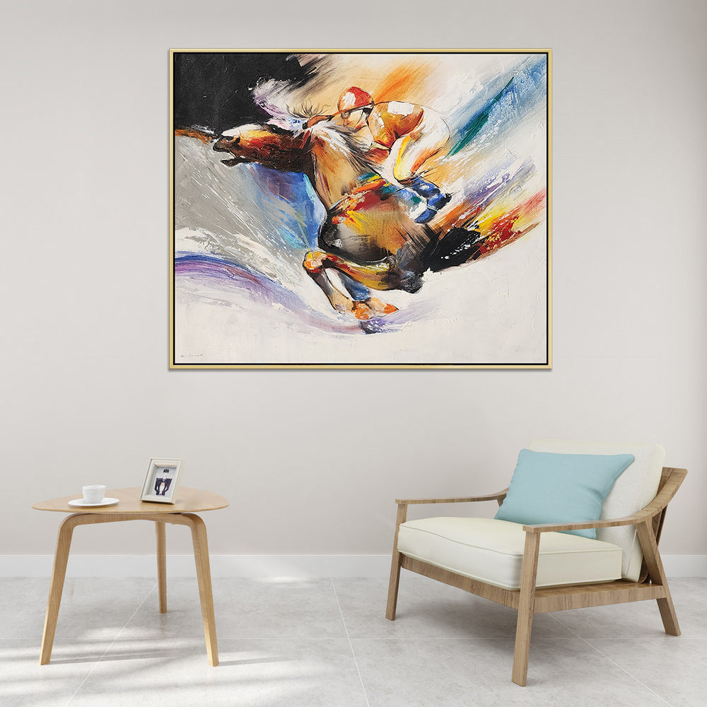 The Racehorse - Stunning hand painted Artwork featuring a Horse racing, Oak Framed.