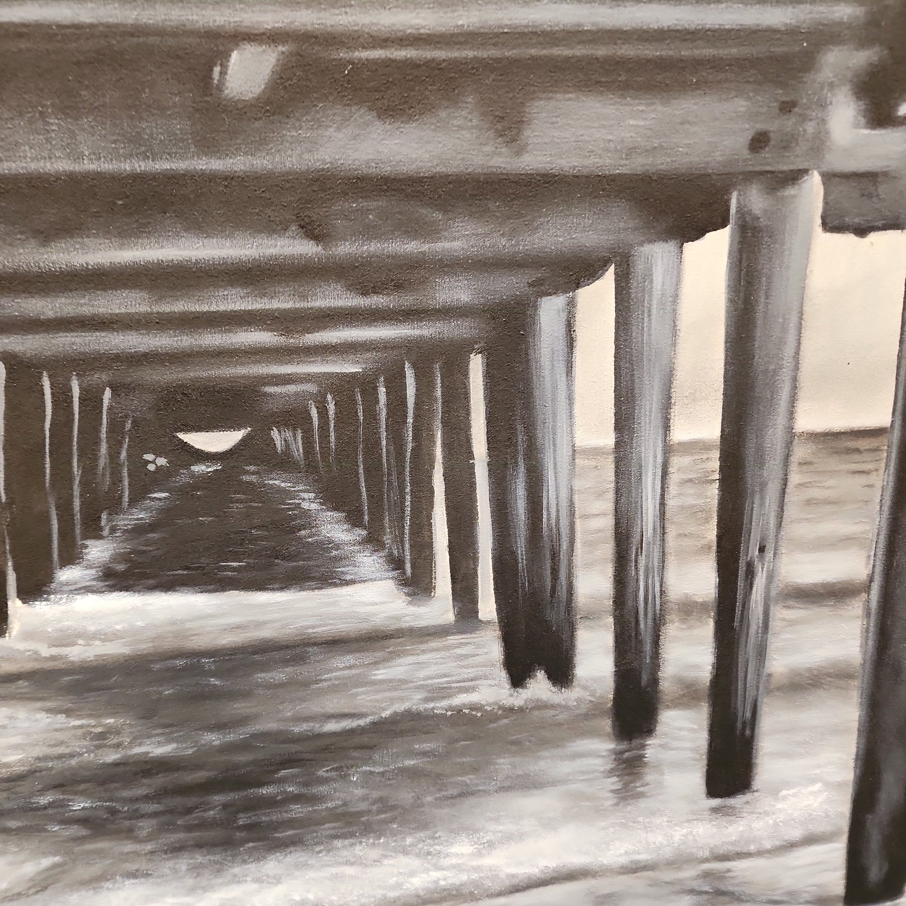 Henley Beach Jetty - Highly Detailed Oil Painting Featuring the Henley Beach Jetty, Painted in Black and White