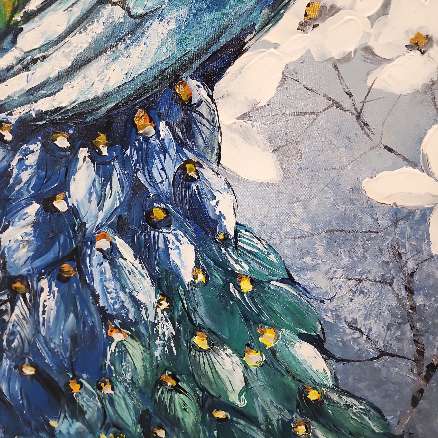 A Flowery Display - Stunning Oil Painting Featuring Peacocks, Size 100x120cm
