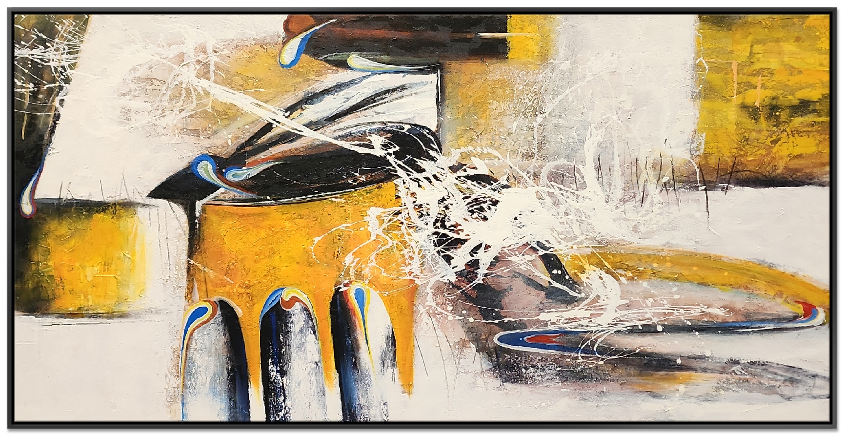 Striking, Energetic Modern Abstract Featuring an Oak Coloured Shadow Frame