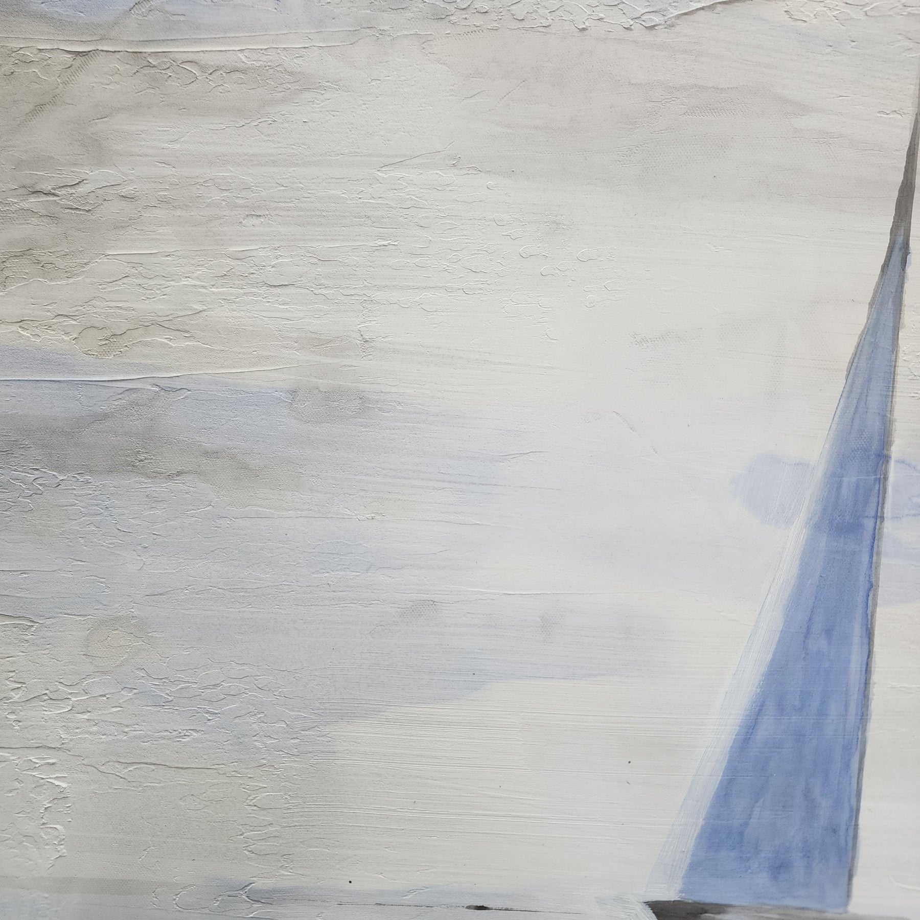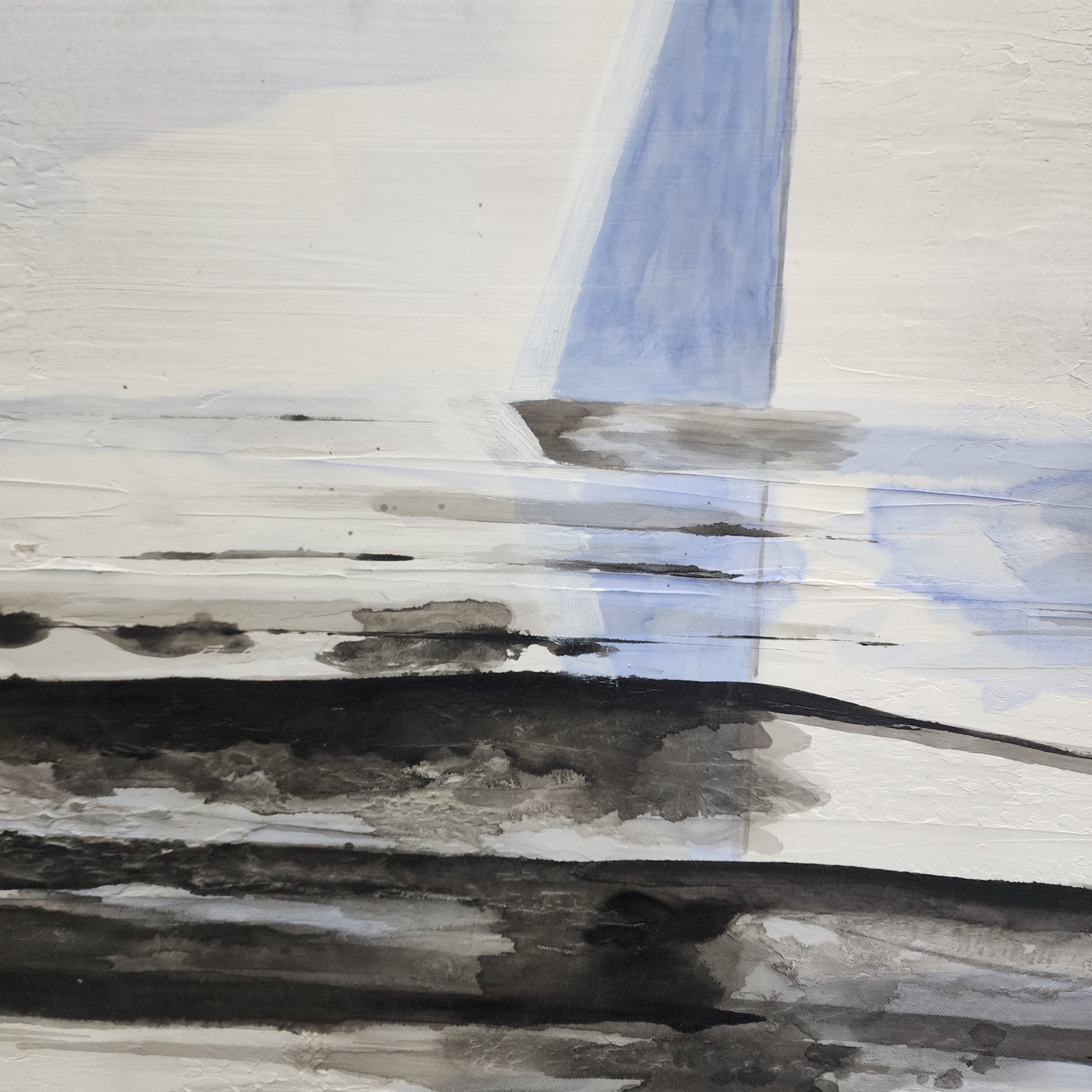Textural painting of delicate flowers in soft shades of white, grey and silver.