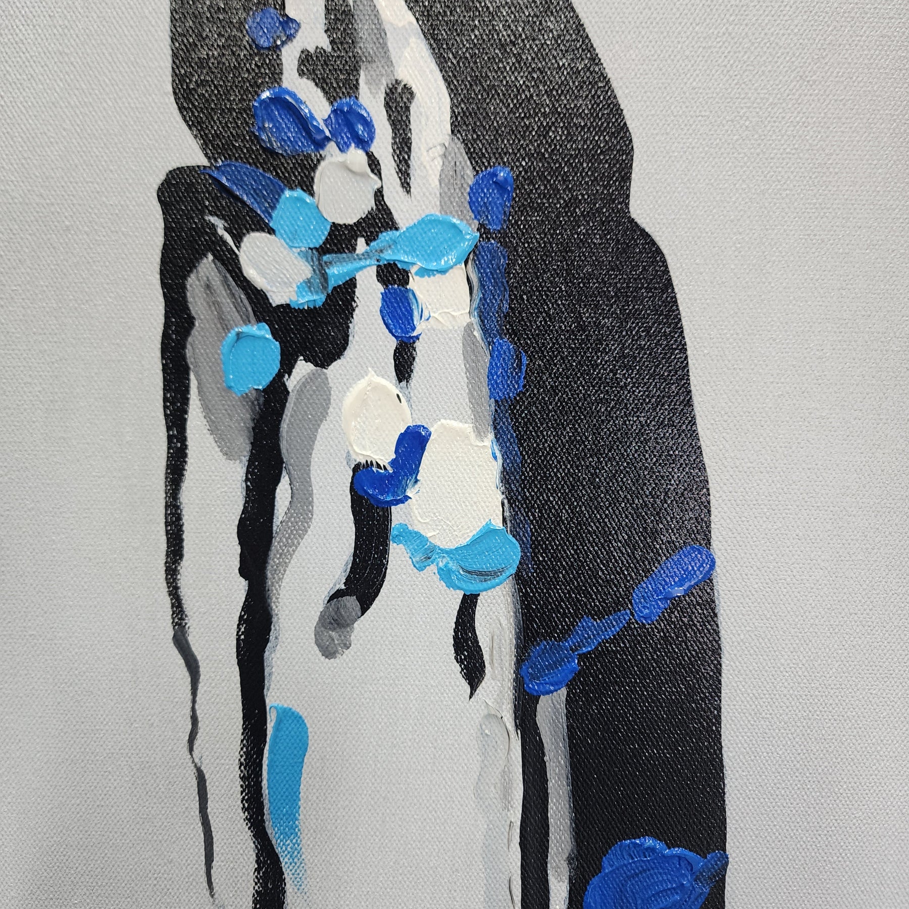 Textural painting of delicate flowers in soft shades of white, grey and silver.