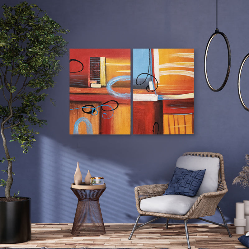 Heat of Abstract - Hand Painted Art - 2 Piece Set MTO-4671